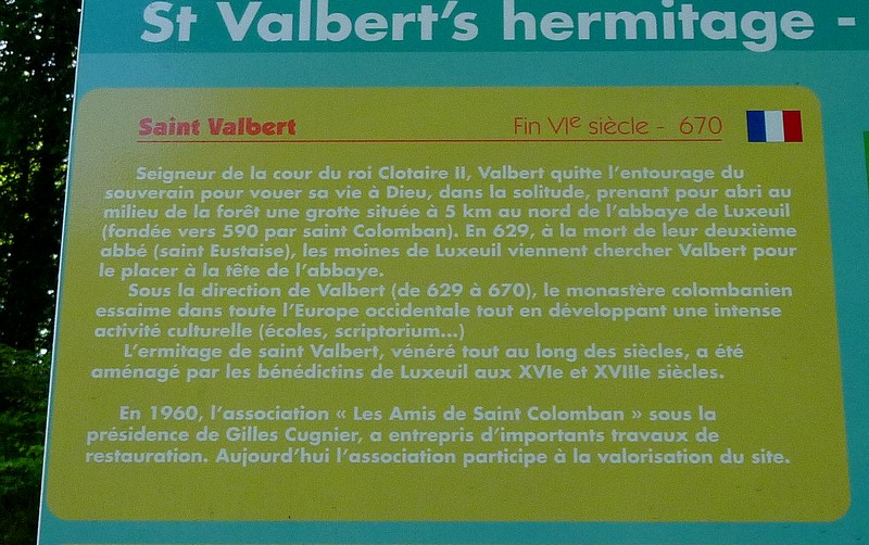L’ermitage restauré par les Amis de Saint Colomban, à l’écart du village dont le nom provient du moine Valbert, est blotti au sein d’une belle forêt de hêtres.