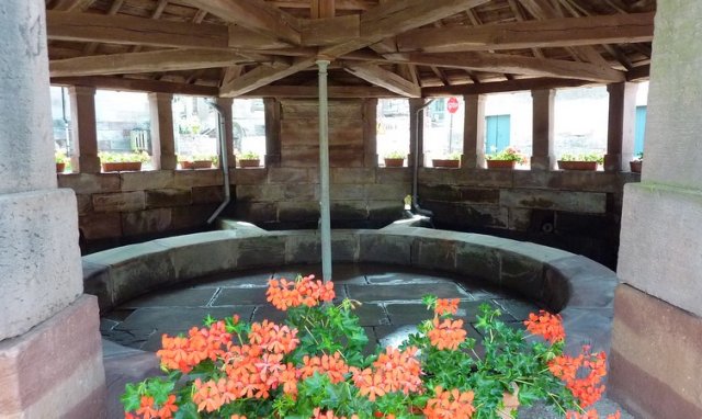 – Dans le village : un beau lavoir octogonal au toit de laves sur une solide charpente en chêne.