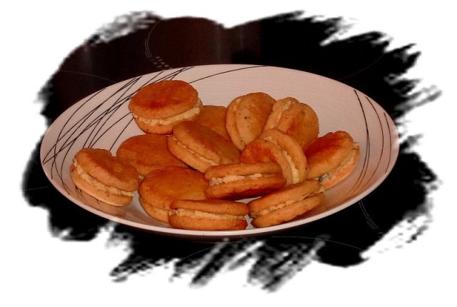– A l’aide un emporte-pièce d’environ 5 cm de diamètre découper des ronds dans la pâte et les poser sur une plaque recouverte d’une feuille de papier sulfurisé.