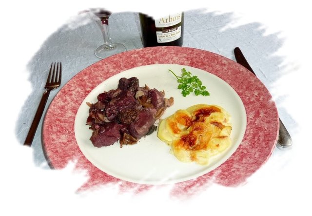 – Le lendemain, verser toute la marinade et la viande dans une marmite en fonte et laisser mijoter 3 heures.