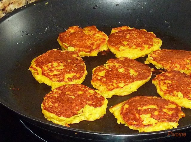 – Former des petites galettes et les faire cuire dans une poêle avec un peu d’huile.