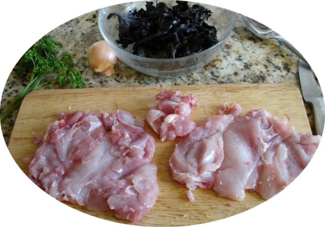 – Réhydrater les champignons dans de l’eau tiède au minimum 2 heures puis les égoutter.