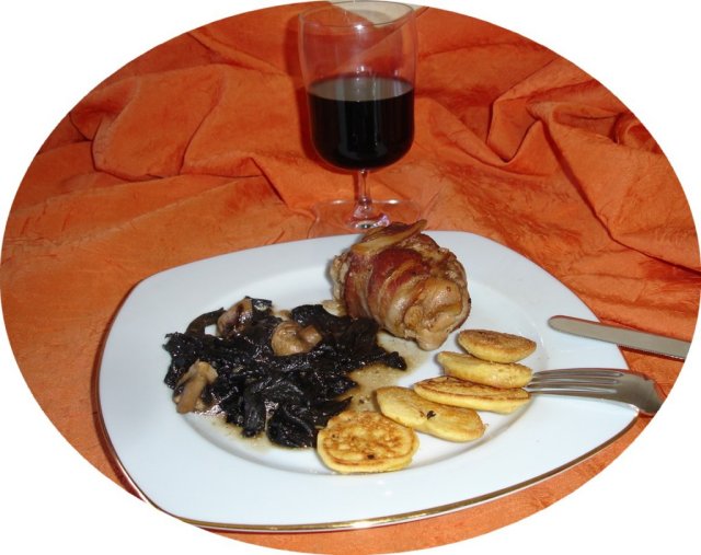 Cuisses de lapin farcies aux trompettes-de-la-mort